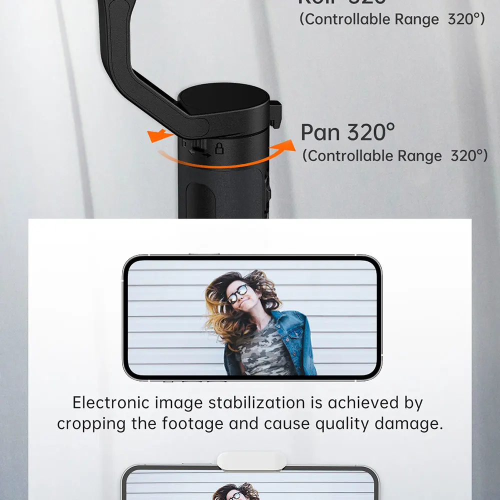 3.【 3-as Mechanische Stabilization】iSteady 4,0 anti-shake algoritme systeem brengt u een boterachtige glad beeldmateriaal en laat u gemakkelijk filmische shots. Dus 3-as mechanische gimbal stabilisatie is veel beter dan elektronische beeldstabilisatie voorkomen beeldmateriaal kwaliteit beschadiging en bijgesneden.