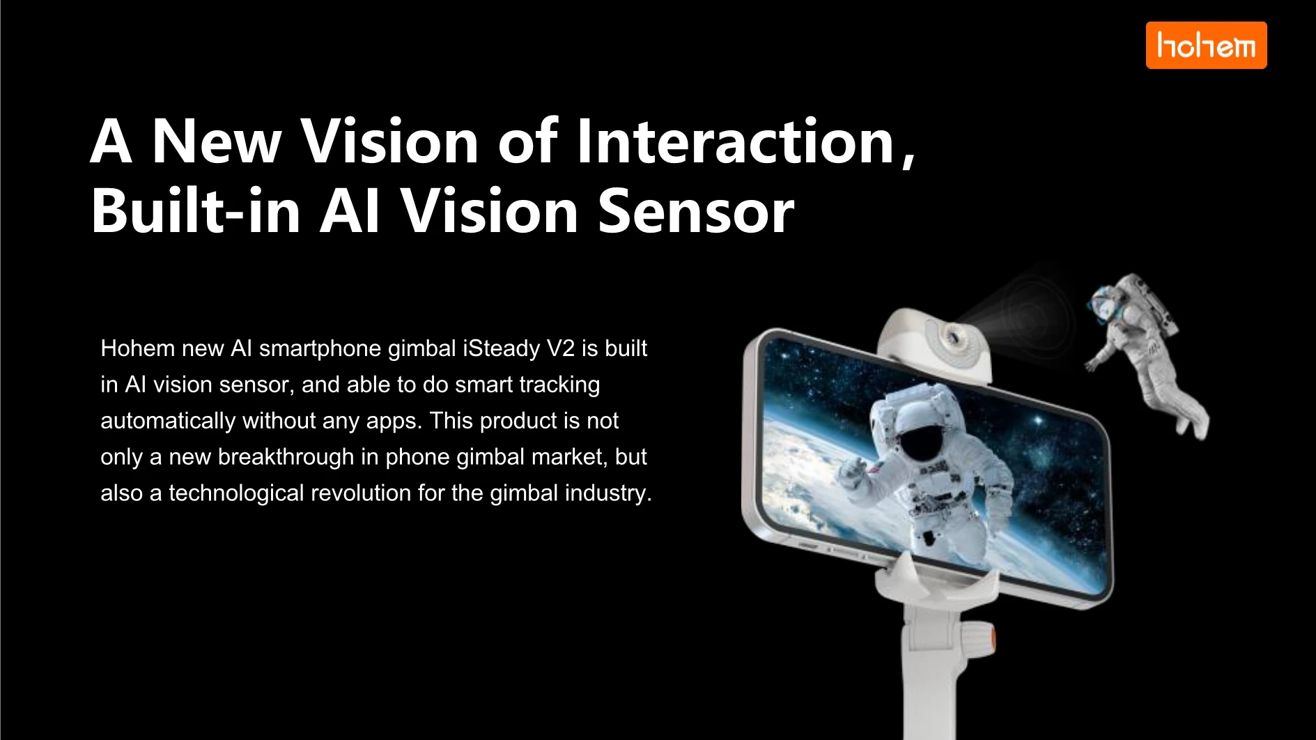 1.【A датчик видения Nieuwe Visie van Interactie-ingebouwde AI 】Hohem nieuwe AI смартфон gimbal iSteady V2 является gebouwd в датчике видения AI, en doen smart tracking automatisch zonder apps. Дит продукт является niet alleen een nieuwe doorbraak в telefoon gimbal markt, maar ook een technologische revolutie voor de gimbal industrie.