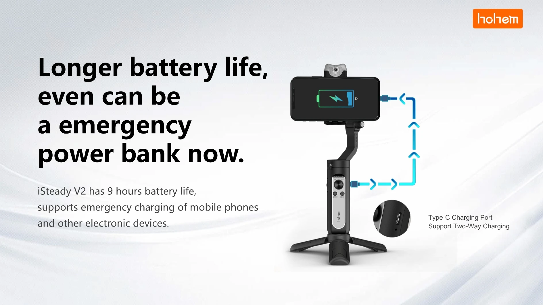 5. 【Более длинный аккумулятор Leven, Zelfs kan Een Emergency Power Bank Now】iSteady V2 heeft 9 uur Batterij leven, ondersteunt emergency opladen van mobiele telefoons en elektronische apparaten.