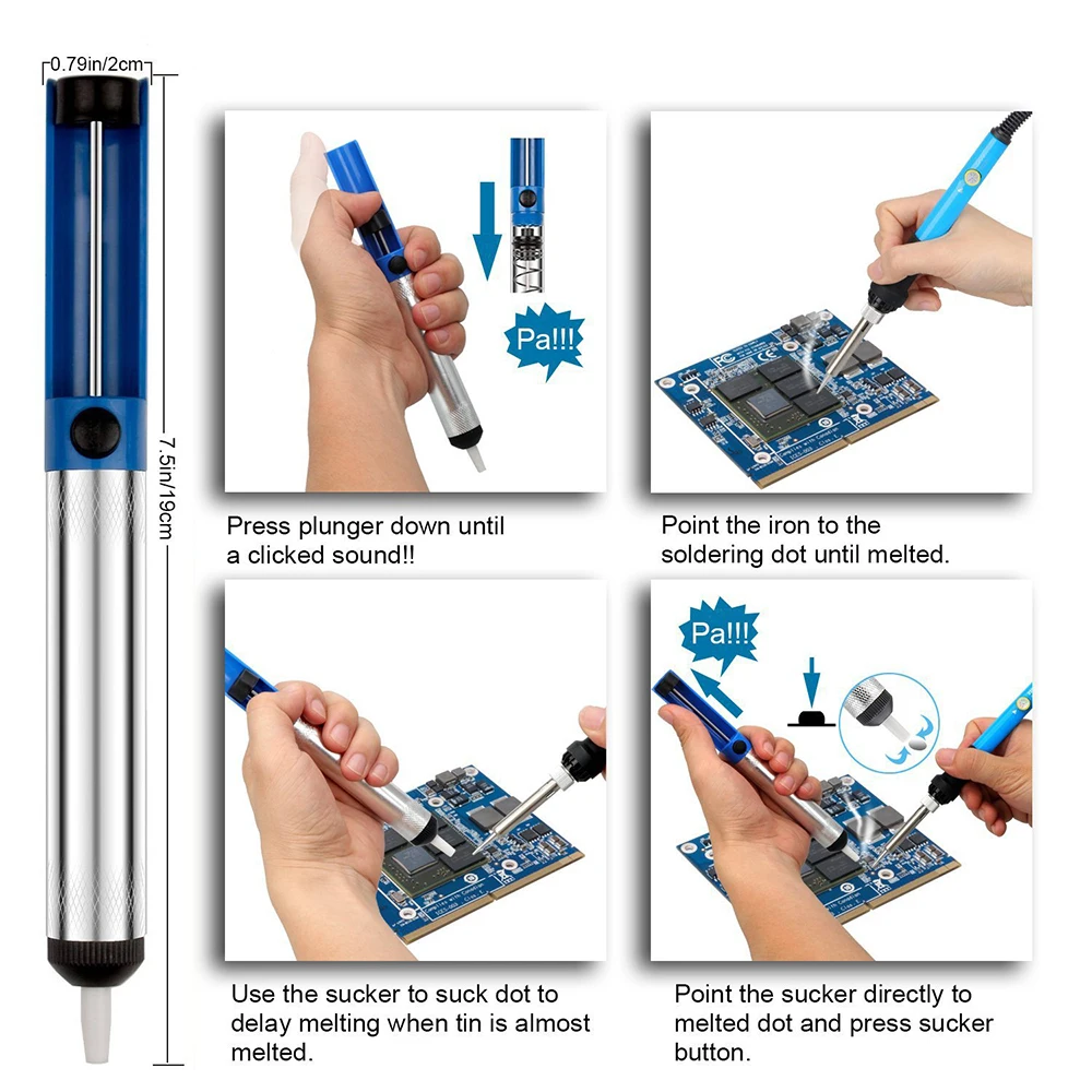 Насос для распайки и сварочный сердечник помогают очистить. Насос для распайки изготовлен из вакуумной трубки высокого давления и основной рамы из алюминия. Его можно использовать одной рукой и может поглощать большое количество припоя, в то время как припой может лучше впитывать небольшое количество припоя.