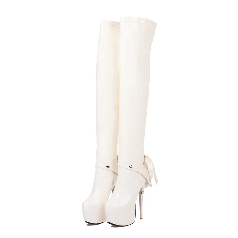 Lucyeverженские высокие сапоги из лакированной кожи на высокой платформе пикантные ботфорты на очень высоком каблуке 16 см женские осенне-зимние сапоги