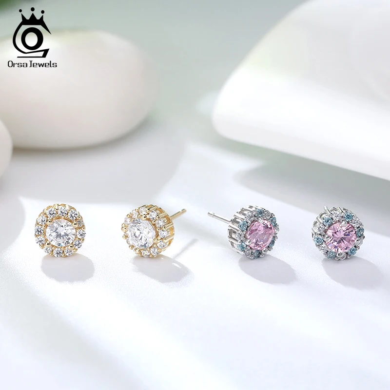 ORSA JEWELS серьги-гвоздики для женщин из стерлингового серебра 925 пробы идеальные полированные разноцветные циркониевые изысканные круглые серьги-гвоздики SE295