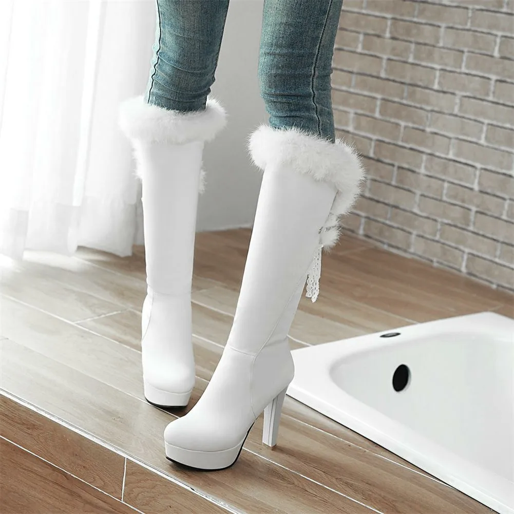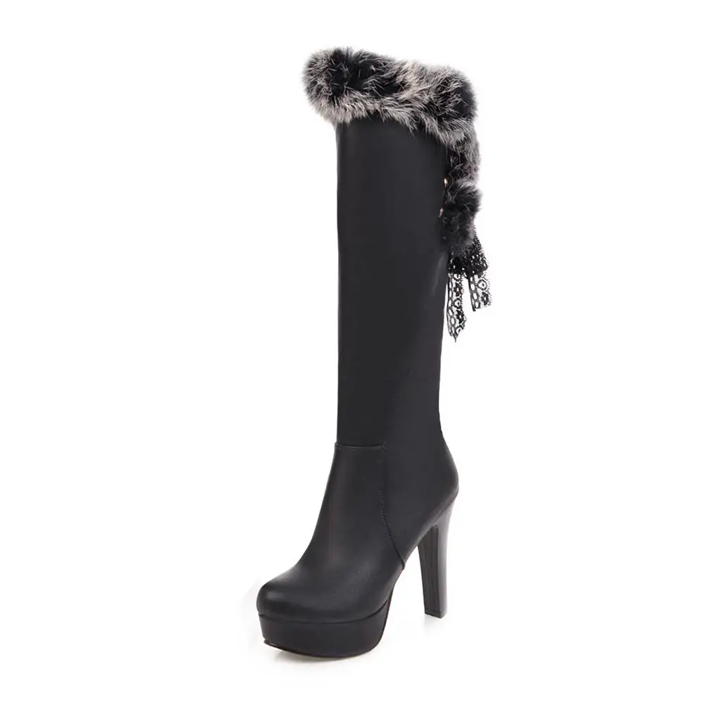 Женские сапоги до колена на платформе и высоком каблуке; Зимние сап...