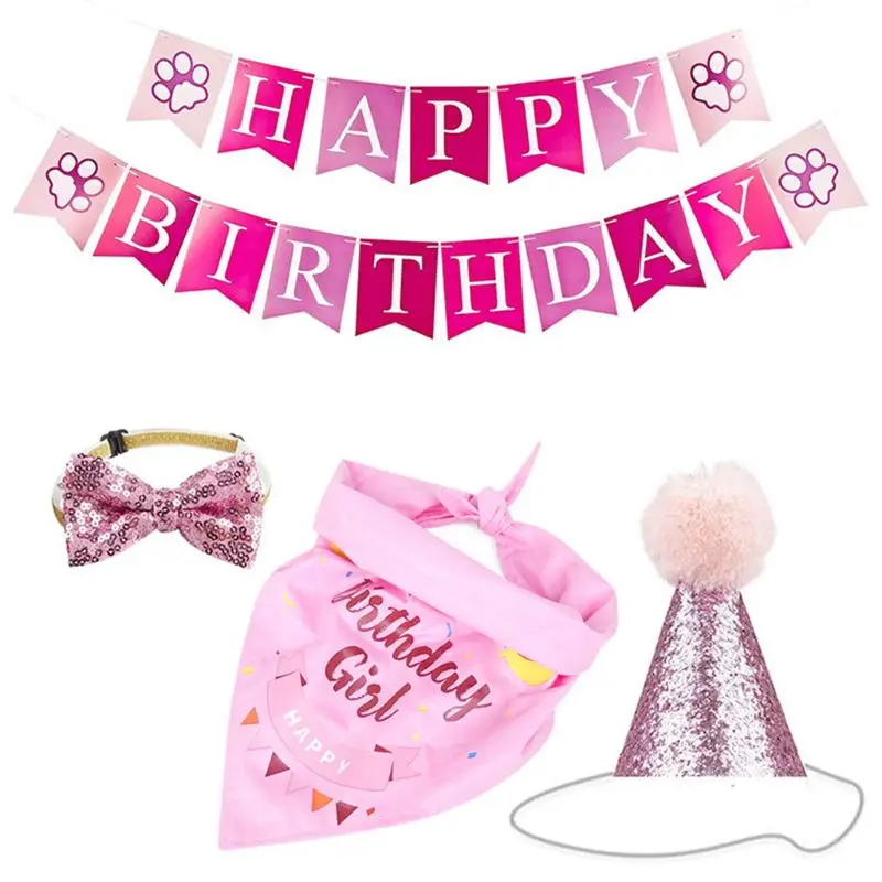 Собака День рождения товары шляпа с днем рождения баннер бандана blingbling бантик для домашних животных День рождения украшения