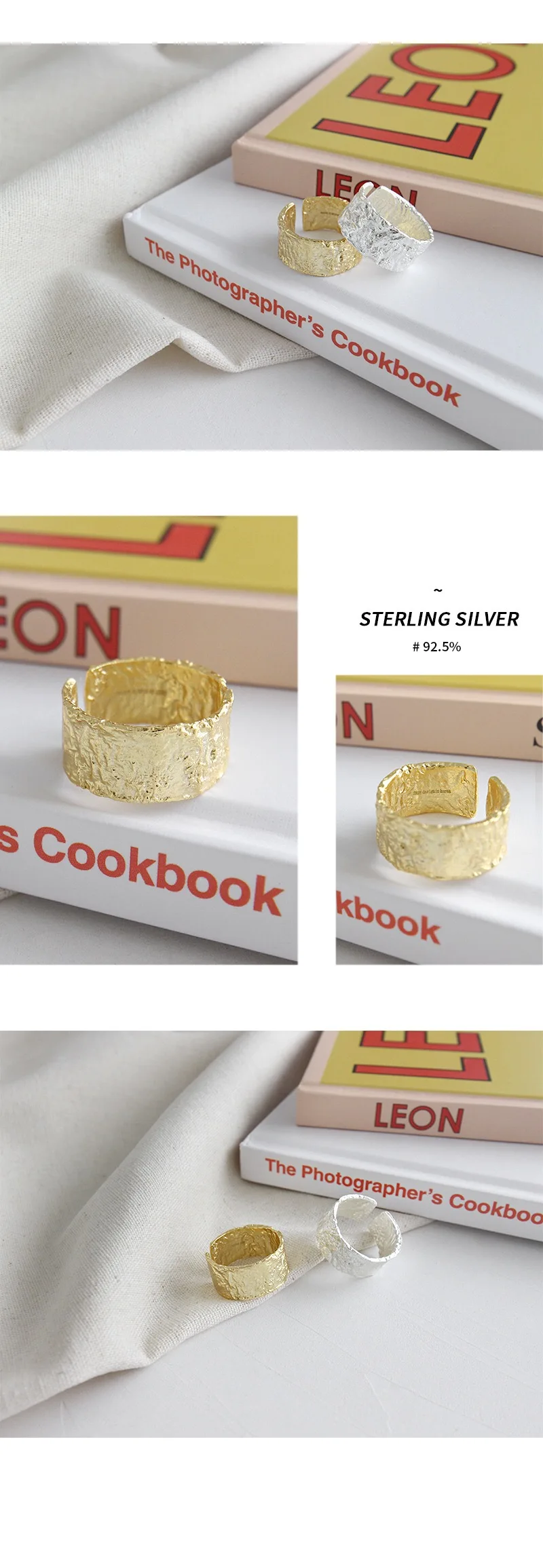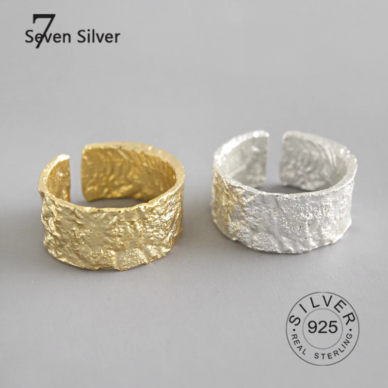 Настоящее серебро 925 пробы, кольца для женщин, матовая поверхность, золотой цвет, трендовые ювелирные украшения, большие регулируемые античные кольца Anillos
