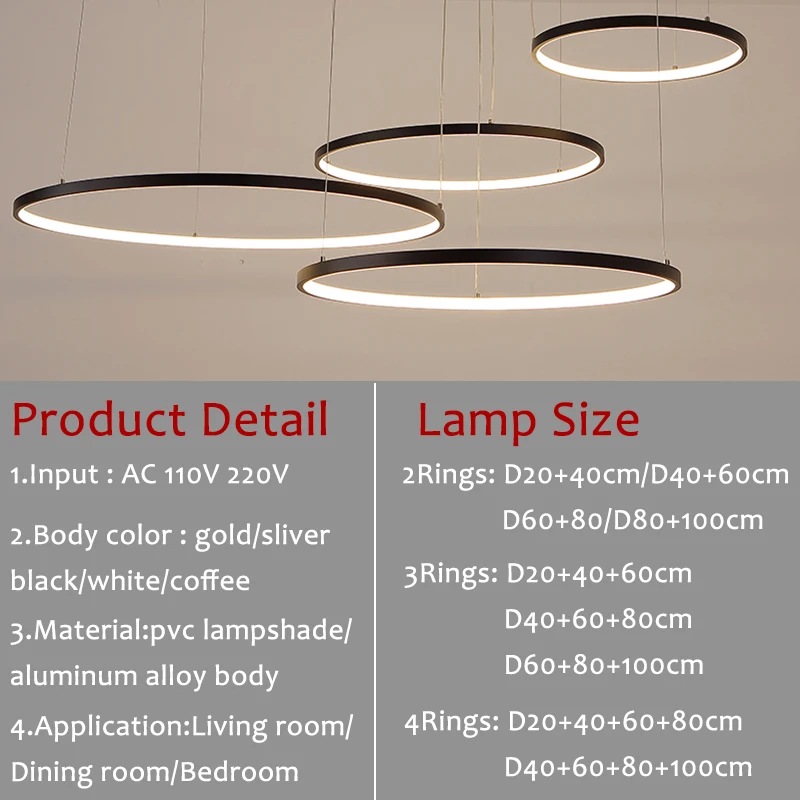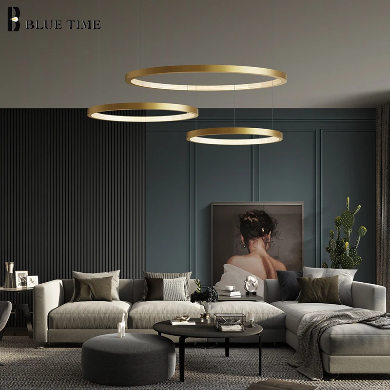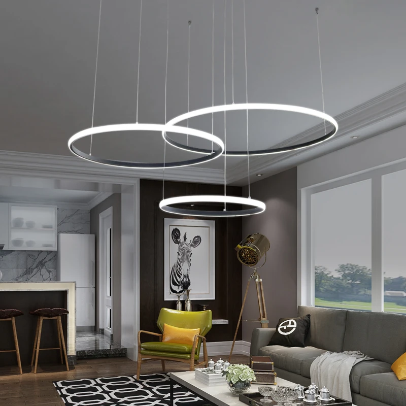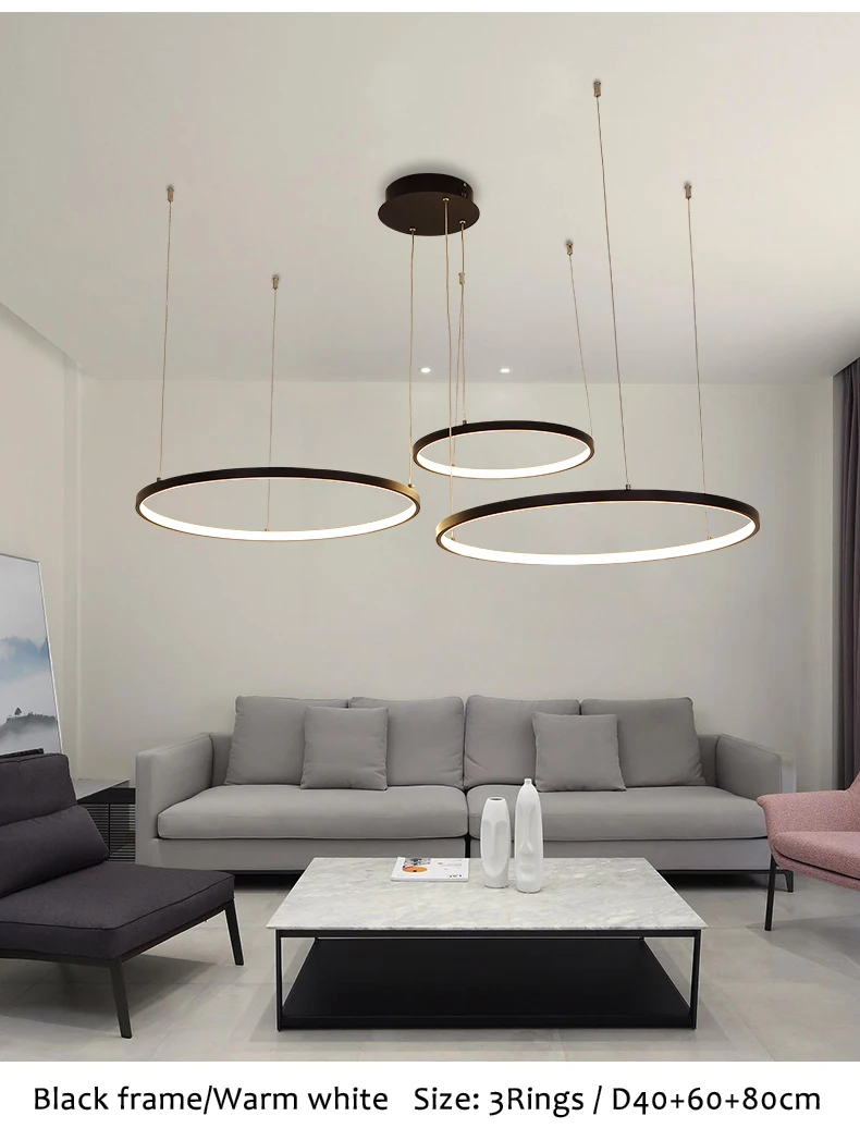 Современный кольцевой светодиодный подвесной светильник для гостиной, столовой, спальни, фойе, светильник и внешний свет, люстра, алюминиевая Подвесная лампа