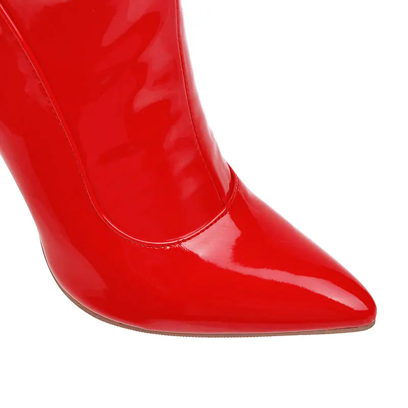 Новые зимние глянцевые черные красные женские сапоги до бедра Sgesvier, привлекательная женская обувь для танцев на шесте, ботфорты на тонком высоком каблуке, G765