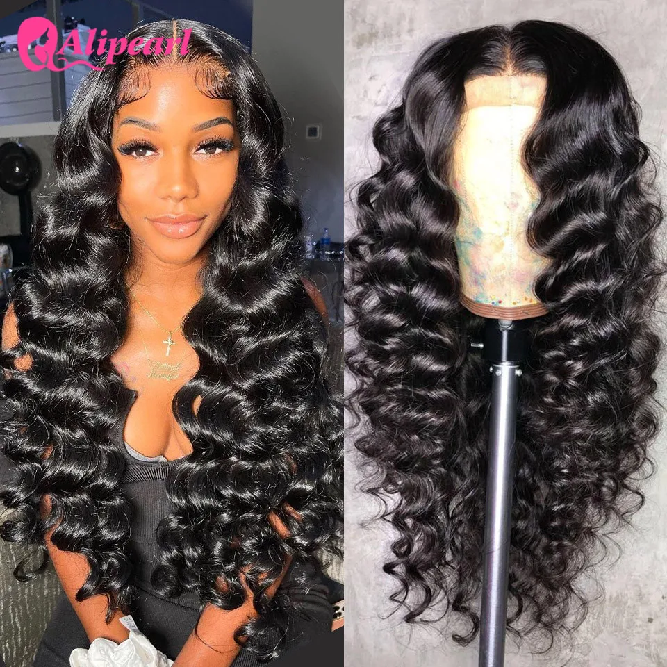 Парики из человеческих волос на сетке спереди, свободные, с глубокой волной, 13x4, парик плотностью 180%, предварительно выщипанные бразильские Искусственные парики с искусственным жемчугом