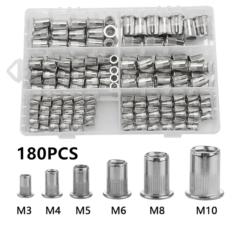 Набор гаек M3M4M5M6M8M10, гайки с плоской головкой из нержавеющей стали, 180 шт.