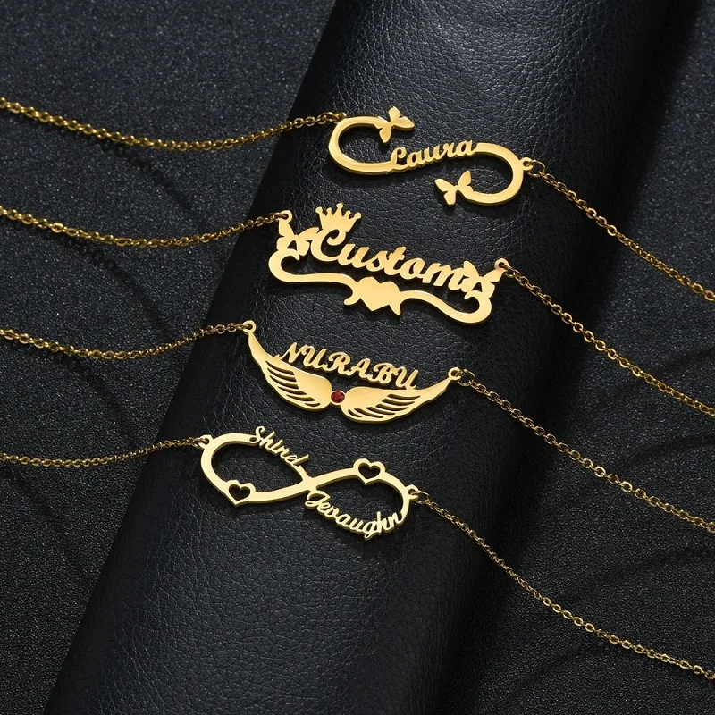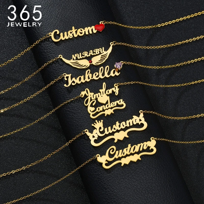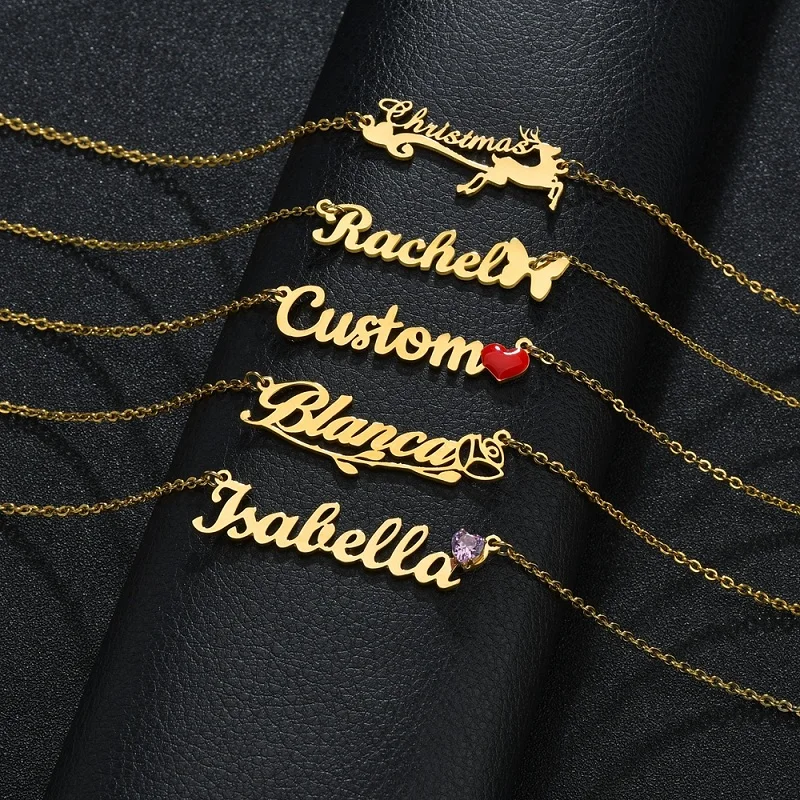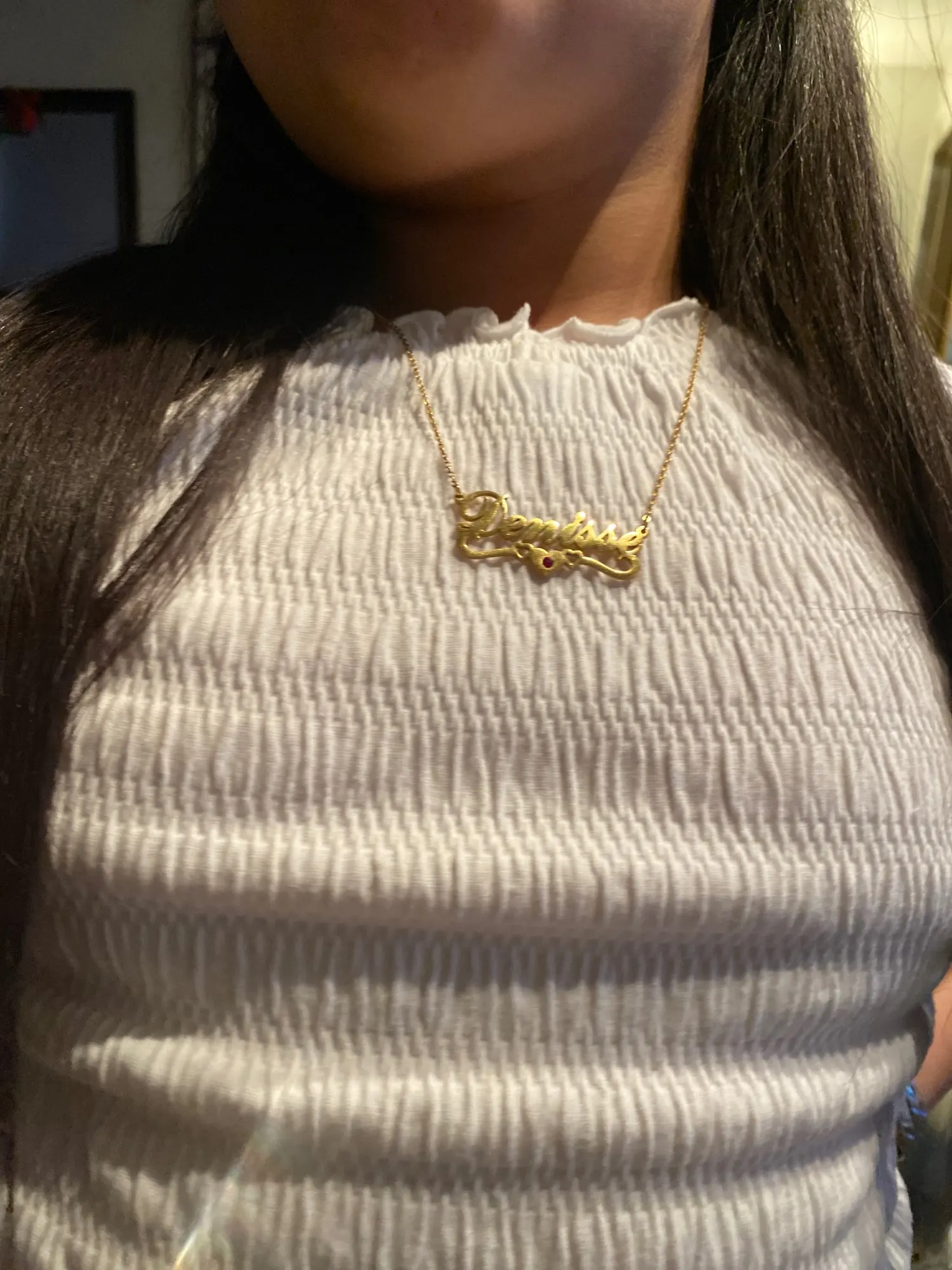 Ожерелье с именем на заказ, с камнем рождения и надписью