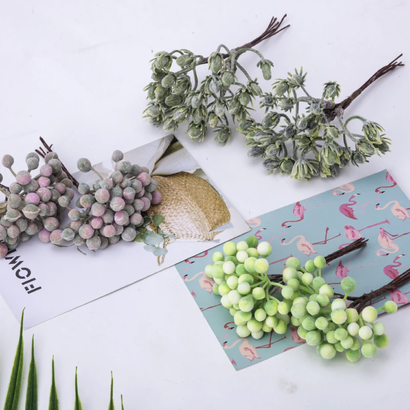 6 шт. Мини Искусственные пластиковые зеленые растения пыленые ягоды для дома свадьбы декора DIY скрапбукинга Рождества поддельные цветы