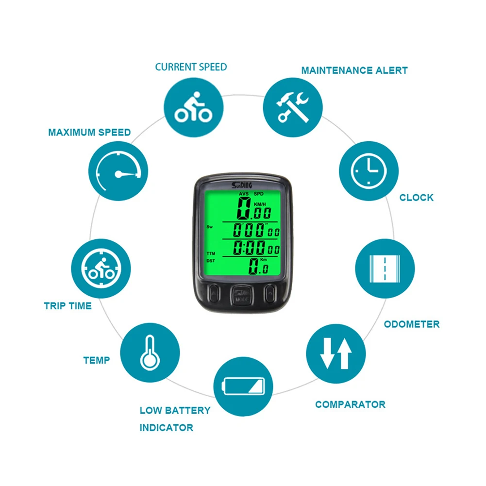 Sunding SD-563AB Проводной Водонепроницаемый велосипедный Спидометр с подсветкой одометр секундомер Аксессуары для велосипеда