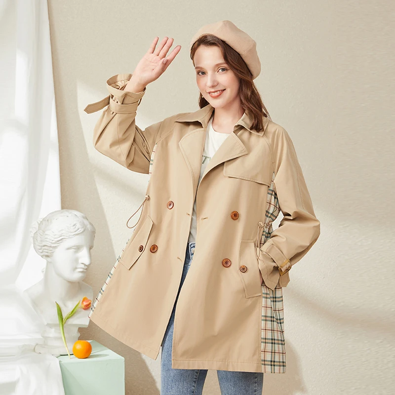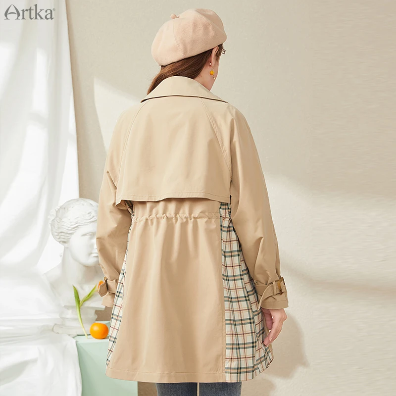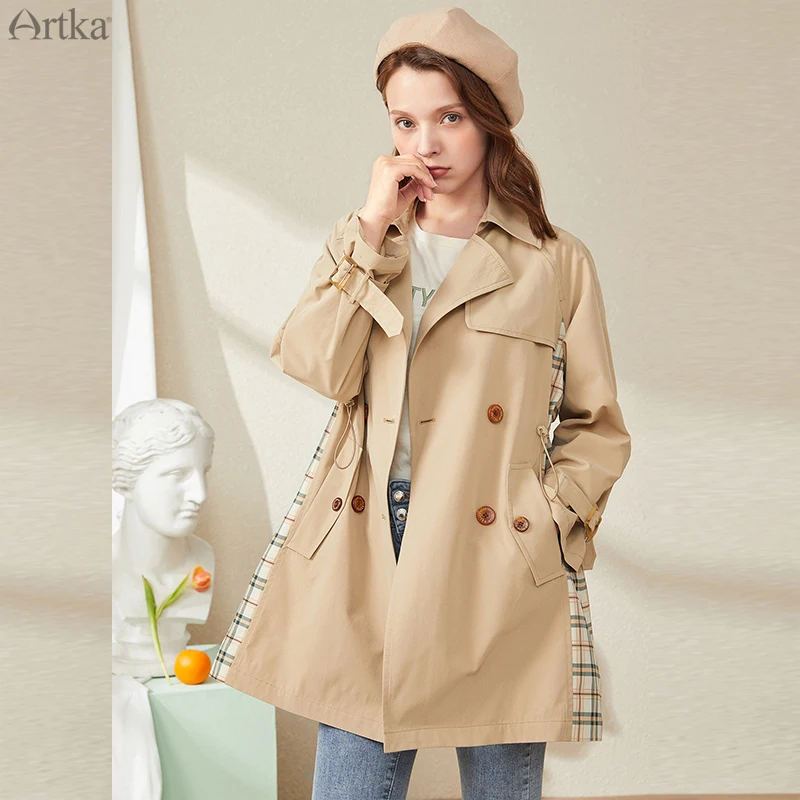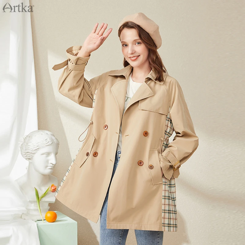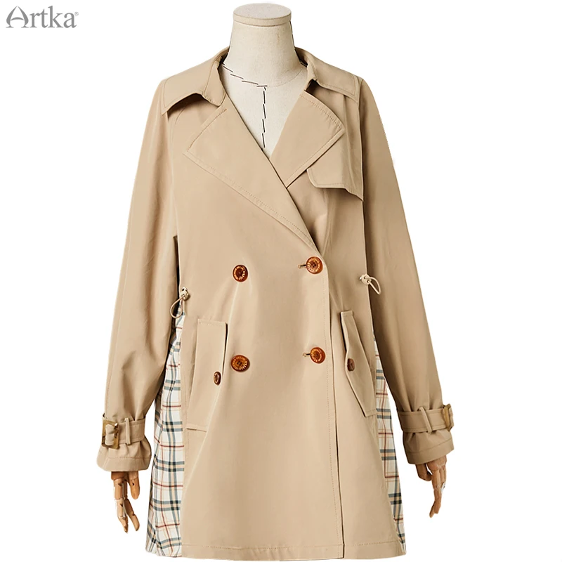Женский двубортный Тренч ARTKA, повседневный клетчатый плащ в стиле пэчворк, ветровка, FA20007Q, осень 2020