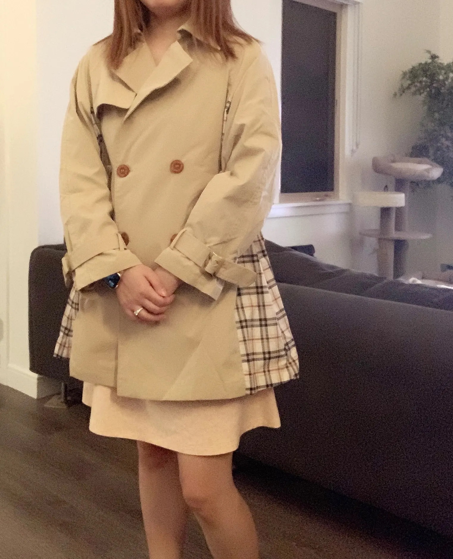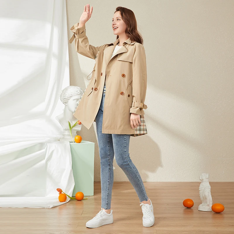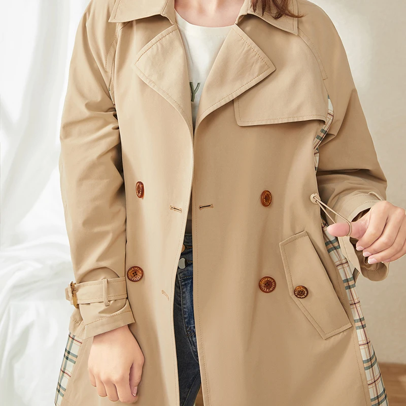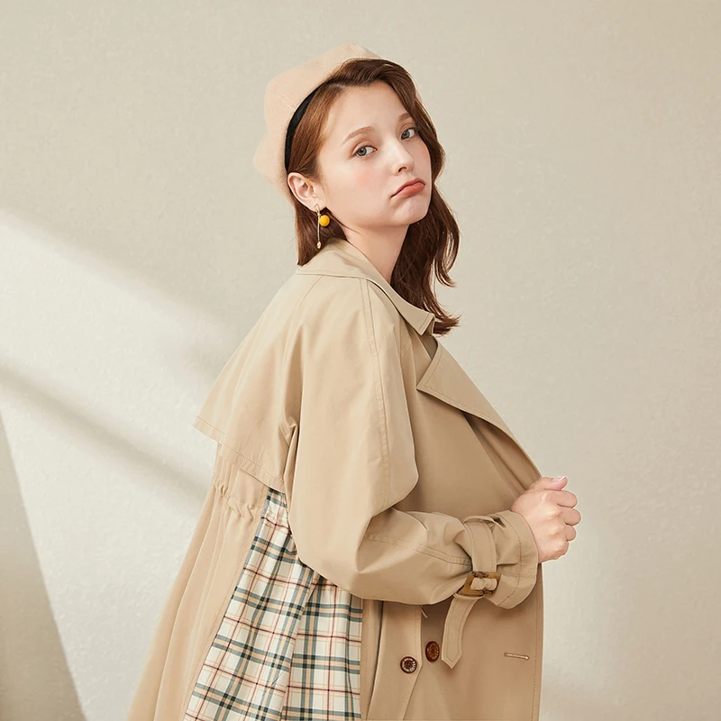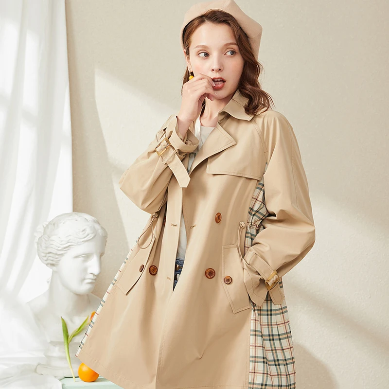Женский двубортный Тренч ARTKA, повседневный клетчатый плащ в стиле пэчворк, ветровка, FA20007Q, осень 2020