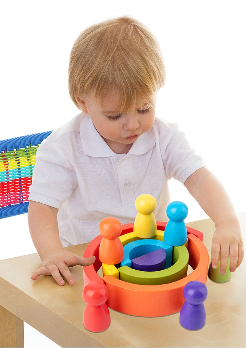 Деревянные радужные пазлы-гнезда, игра для укладки, обучающая игрушка, геометрический строительный блок Монтессори, развивающие игрушки для детей, подарок для малыша