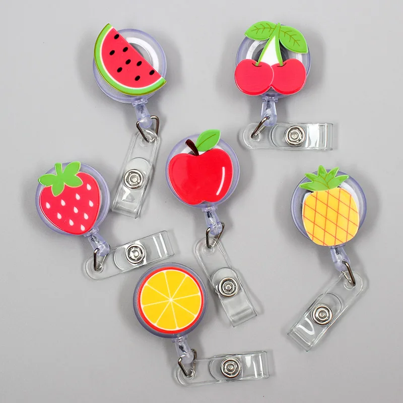 Творческий Фрукты клубники смолы выдвижной Бейдж медсестра Студент выставка ID карты Зажимы для бейджа канцелярских принадлежностей