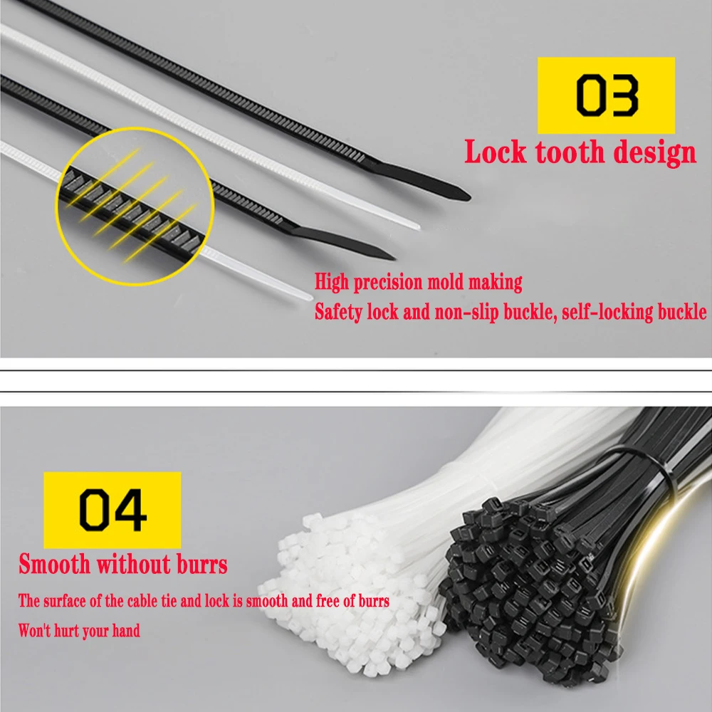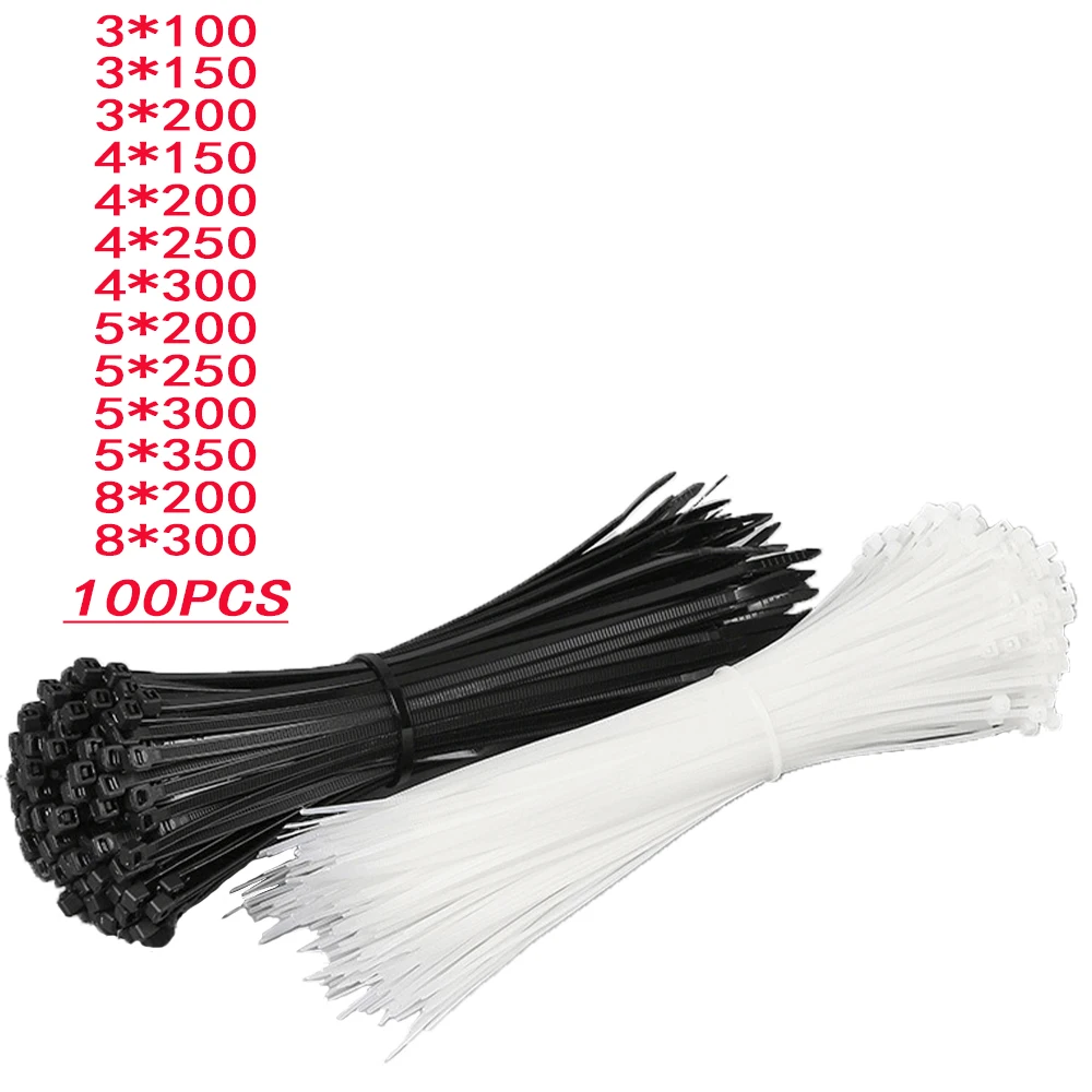 100 шт. нейлоновые кабельные стяжки самоблокирующиеся белые черные пластиковые кольца обмотка кабеля стяжки фиксированные кабели различные характеристики