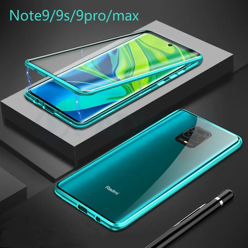 Магнитный чехол для Xiaomi Redmi Note 9, 9s, 9 Pro Max, двусторонний чехол из закаленного стекла для Redmi 9, Note 8, 8, A, 8T, металлический чехол