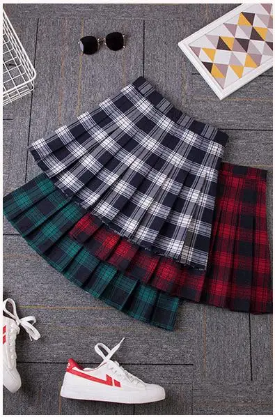 Школьная юбка для девочек, красная, черная, зеленая, в клетку, с высокой талией