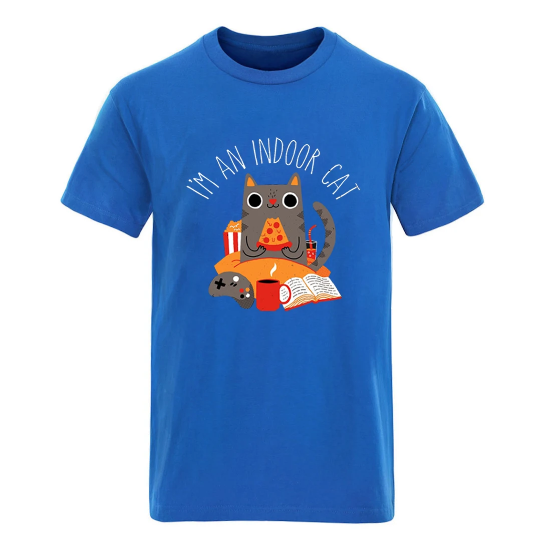 Мужские хлопковые футболки с коротким рукавом, в стиле хипстер, с изображением кошки, ест пиццу, размера плюс, 2020