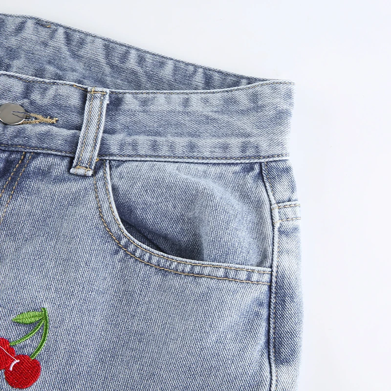 Женские джинсы с вышивкой вишни HEYounGIRL, повседневные синие джин...
