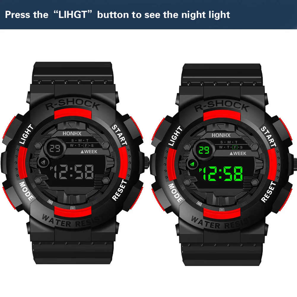 Комфорт и мода:Силиконовый резиновый ремешок для часов с большим двойным циферблатом делает его удобным в носке и приведет вас к лучшей спортивной моде. Идеально подходит как для внутреннего, так и для активного отдыха. Многофункциональный:Двойная часовая зона, календарный день и дата, будильник, водонепроницаемость, светодиодный дисплей, задний светильник, ударопрочность, секундомер.