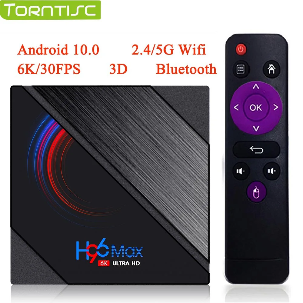 H96 MAX H616 Android 10 Torntisc ТВ коробка 2020 6K 3D, 4 ГБ, 64 ГБ, Смарт медиаплеера 2,4 г5G Wi-Fi Bluetooth 4 ядра Android ТВ коробка