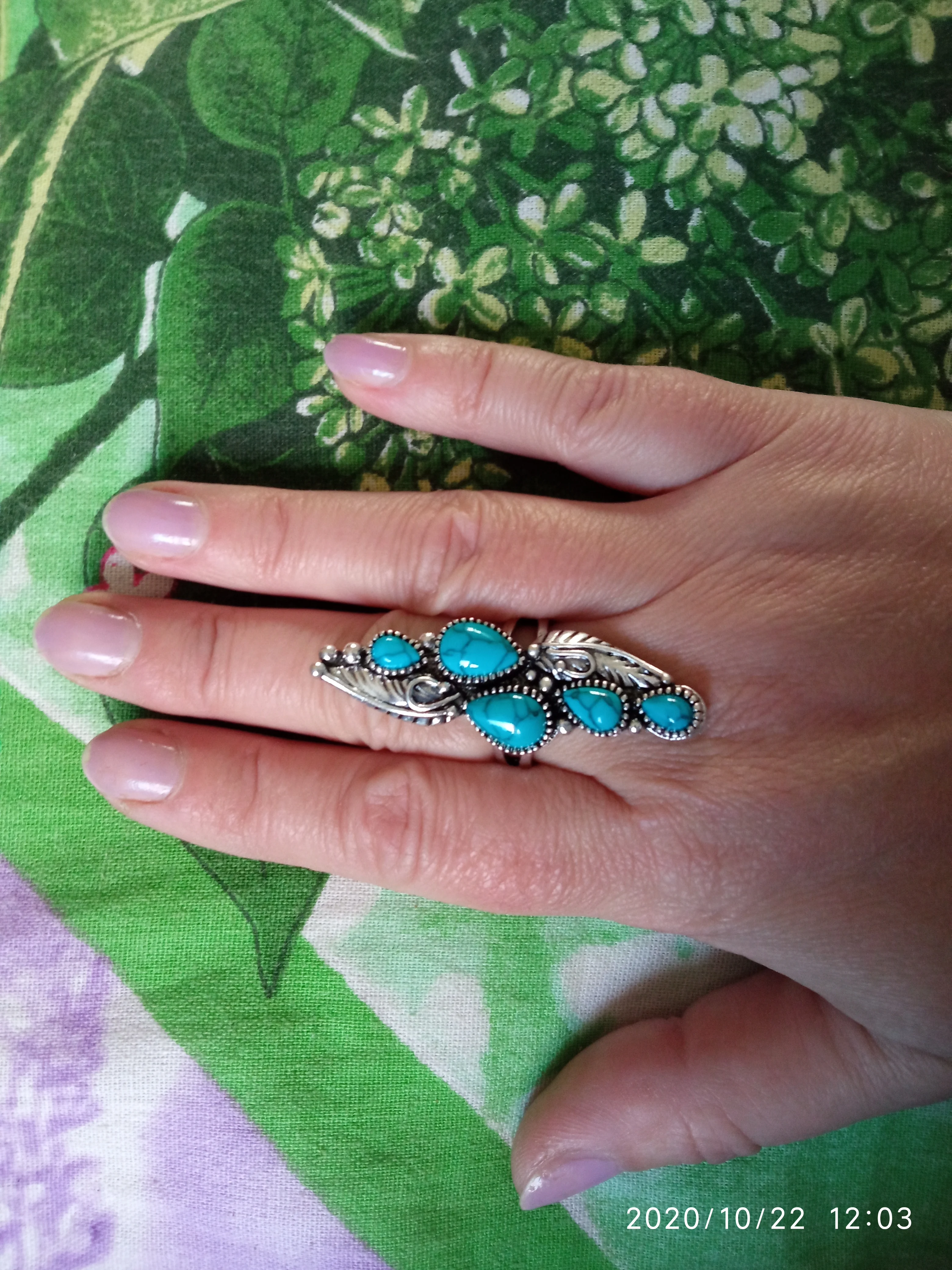 Очень красивое кольцо. Удачная имитация бирюзы. Спасибо