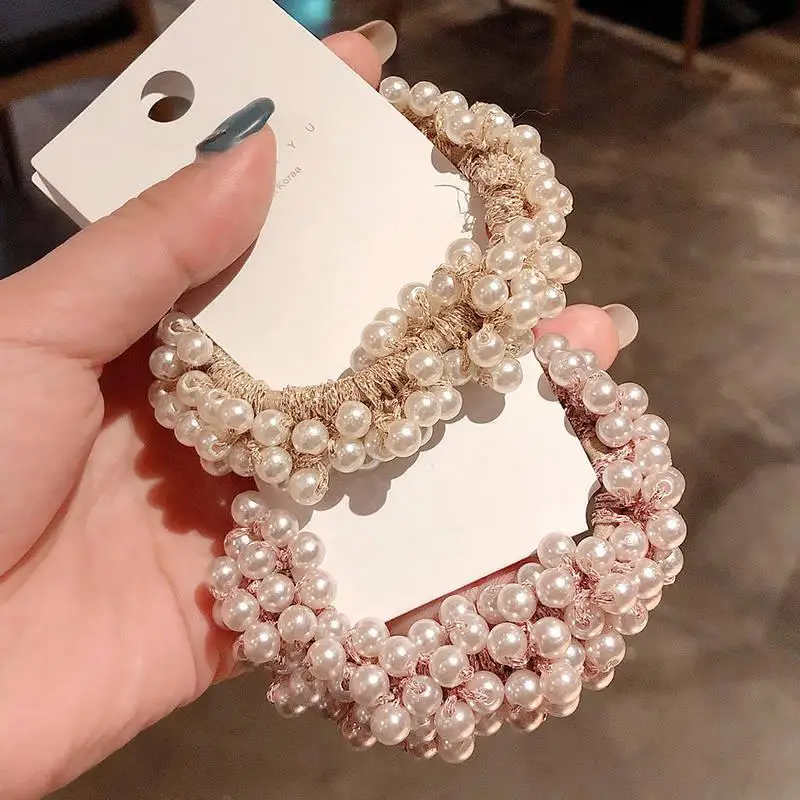 Резинка для волос женская, женская резиновая, с жемчугом, эластичная