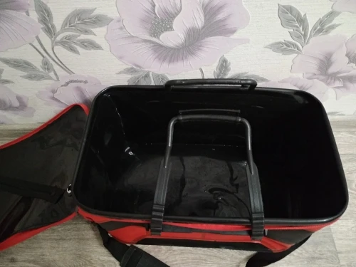 Сумка пришла быстро в 96 регион, давно по такую искал для рыбалки. Замочки работают хорошо, все швы пластика спаяны. Воду наливал течи нет. Ручки откидываются в низ до пола, в верхней точке встёгиваются в друг,друга. Вес 840 гр.