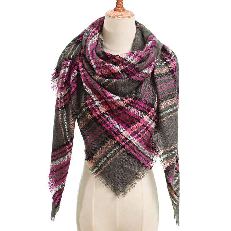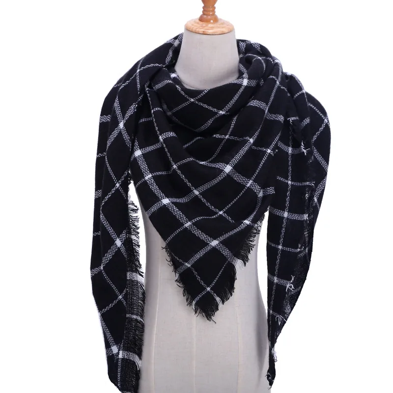 Женский шарф, зимние кашемировые шарфы в клетку, женские шали, бандана на шею, теплый вязаный треугольный бандажный платок, женские шарфы