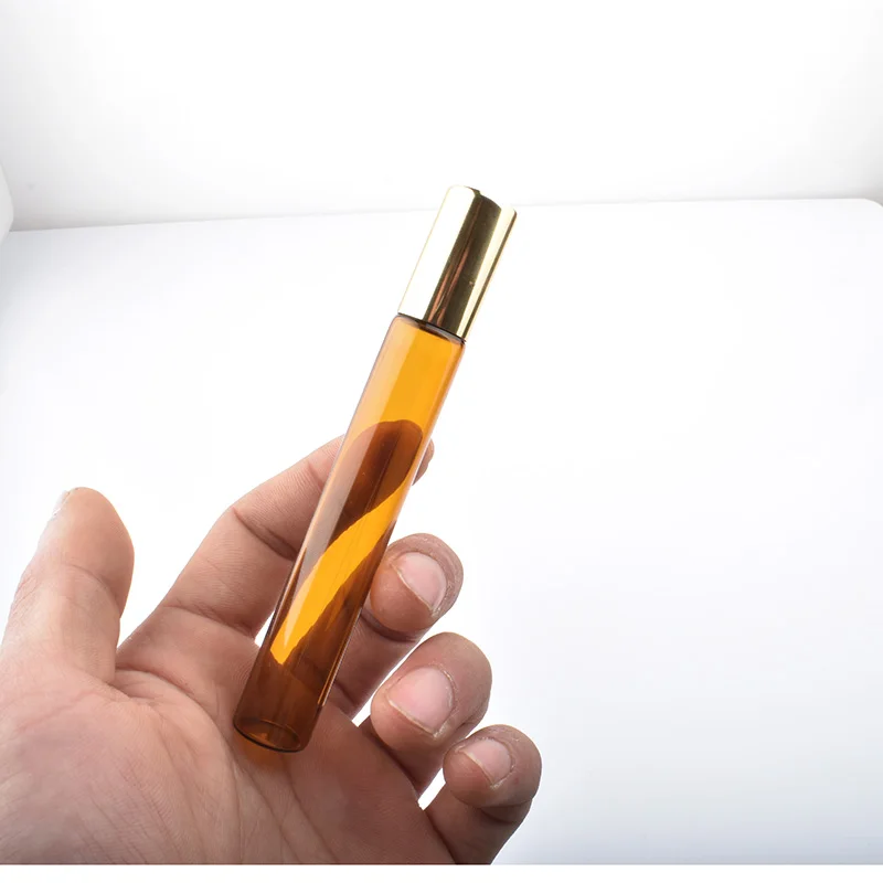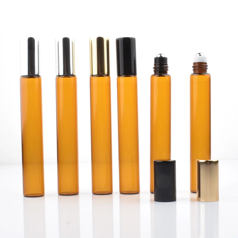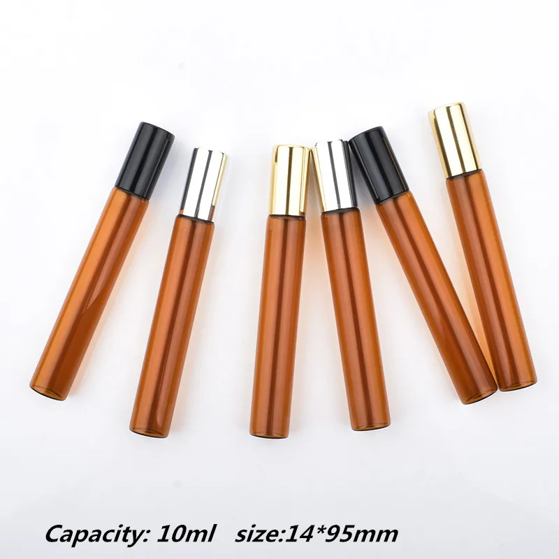 50 шт.лот, 10 мл, янтарный Тонкий Стеклянный рулон на бутылке, проба образцов, флаконы для эфирного масла с металлическимстеклянным шариком