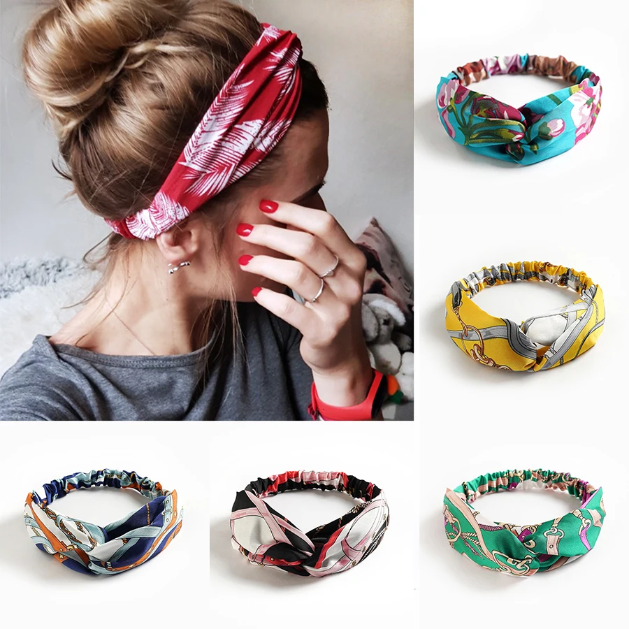 Повязка на голову женская, шифоновая, летняя, в полоску, с цветами, тюрбан, повязка на волосы с крестиком
