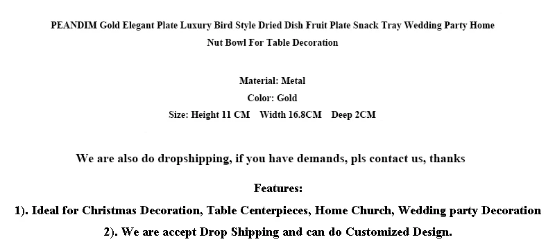 PEANDIM Золотая элегантная тарелка, роскошное блюдо для сушеных фруктов в стиле птицы, поднос тарелка для закуски, домашняя тарелка для орехов, для украшения стола