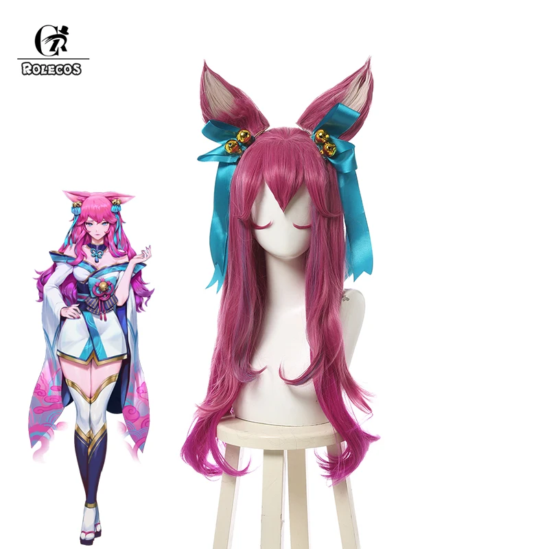 ROLECOS LOL Дух цветок Ahri Косплэй парик LOL Косплэй игра Ahri парик градиент Красного и розового цвета свободная волна 70 см Для женщин Хэллоуин Головные уборы
