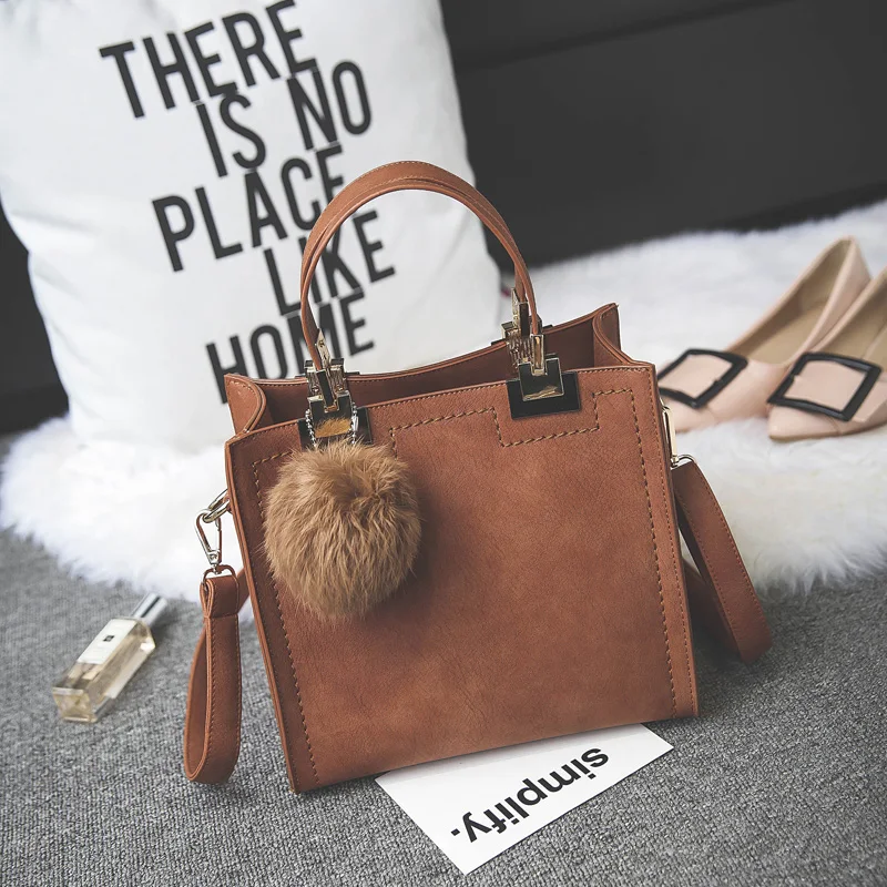 Новая горячая распродажа Сумки из натуральной кожи женская повседневная сумка-тоут женская большая сумка на плечо, высококачественные женские туфли из замши, Сумки из натуральной кожи с меховым помпоном