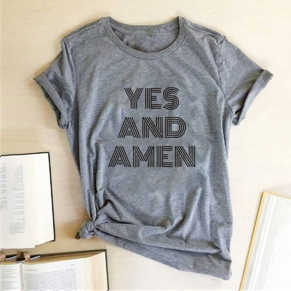Женские футболки с принтом Yes and Amen, летние футболки из хлопка с графическим принтом, уличные свободные футболки с вырезом лодочкой, Harajuku, женские топы, 2020