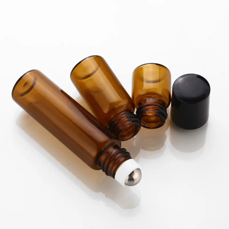 50 шт.лот 1 мл 2 мл 3 мл 5 мл янтарная стеклянная бутылочка с роликом Бутылочки для эфирного масла пустые косметические контейнеры многоразовая бутылка