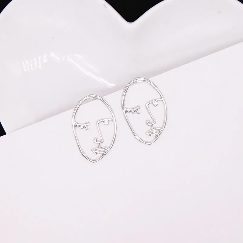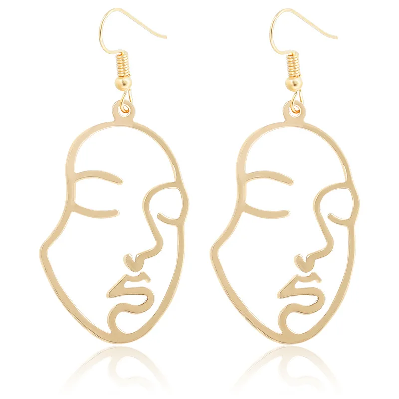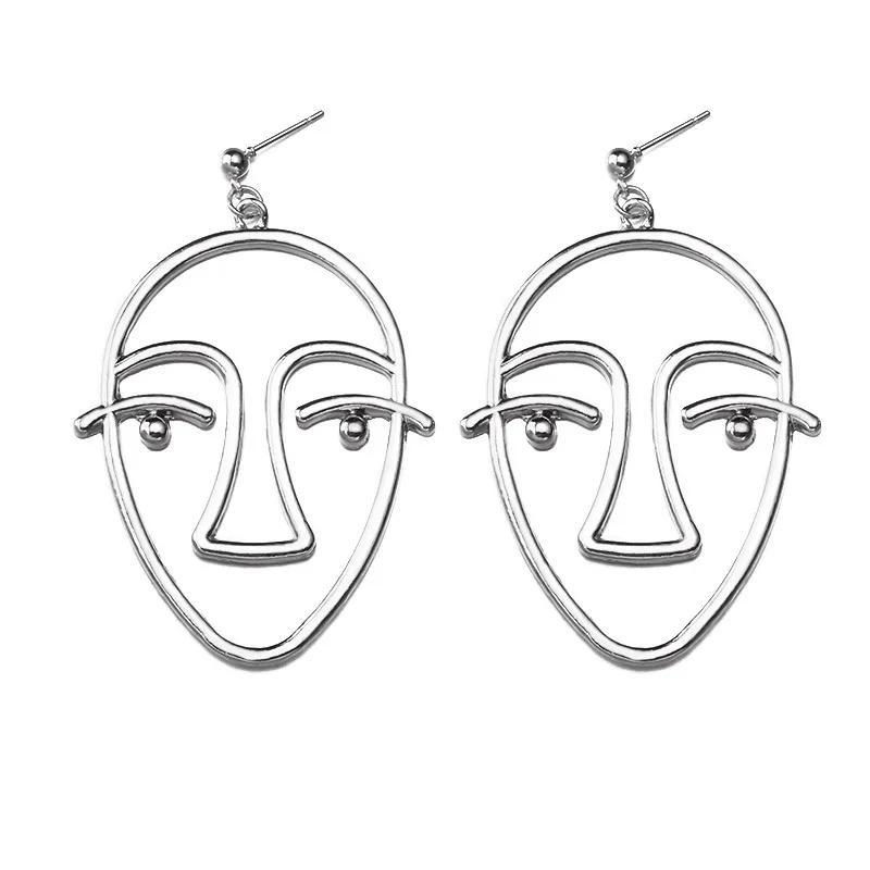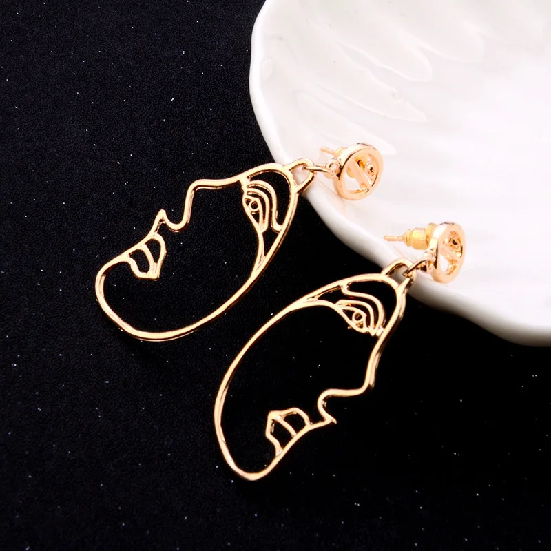 Женские серьги-подвески в стиле панк с человеческим лицом, в стиле ретро, с абстрактным полым дизайном, Металлические Модные серьги-подвески, ювелирные изделия для девочек