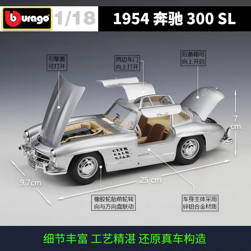 1:18 Bburago 1954 MZ 300SL модель автомобиля из сплава статические металлические модели автомобилей
