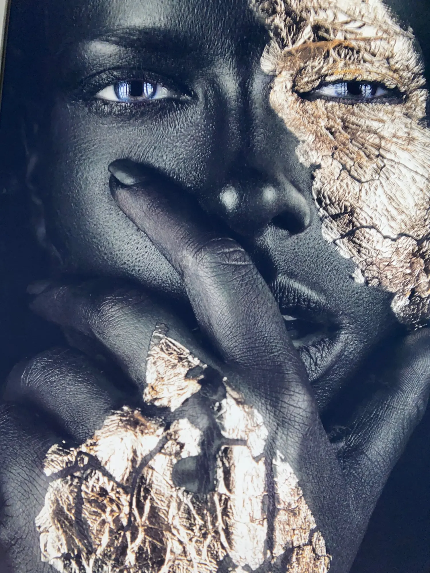Черное лицо женщины с золотом плакат на холсте с жидкостью большой ...