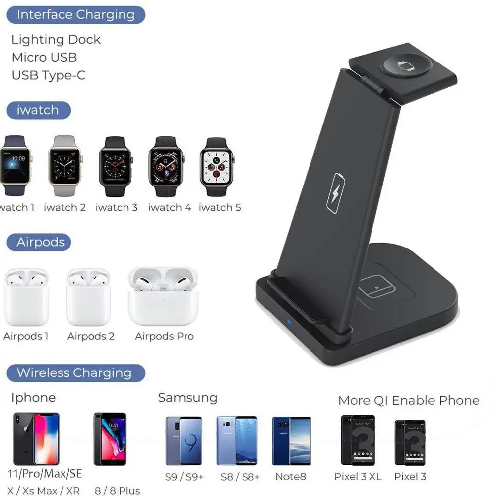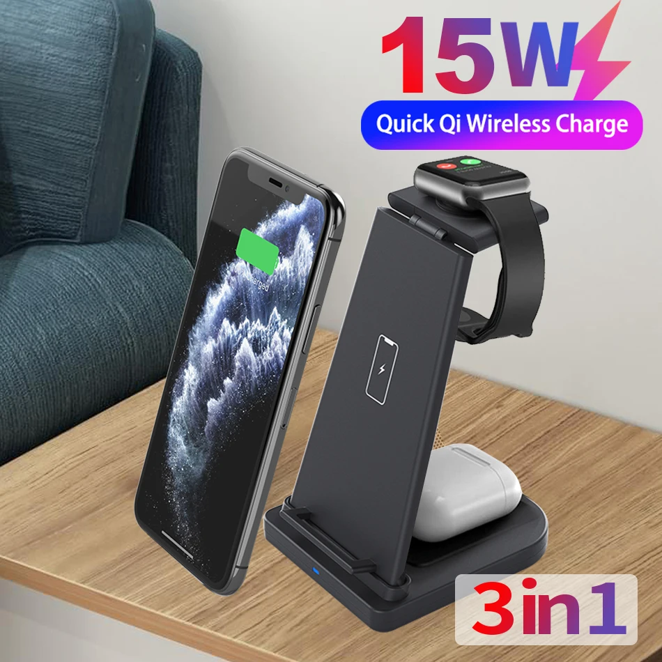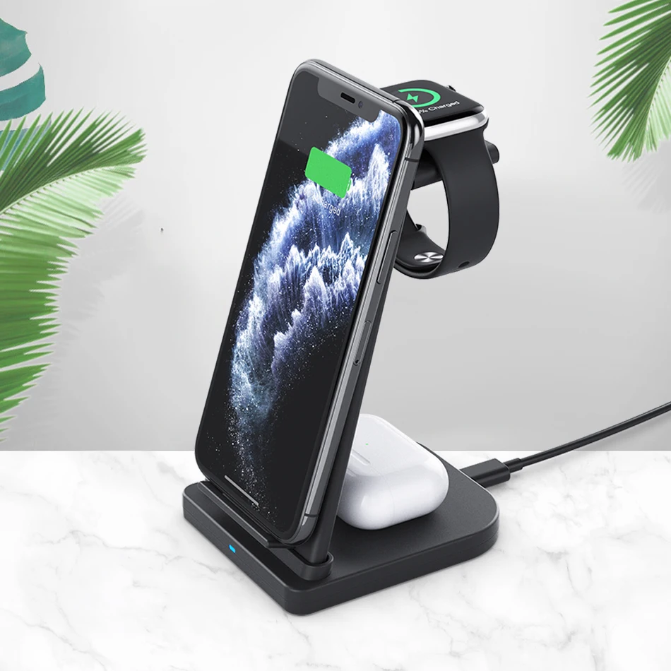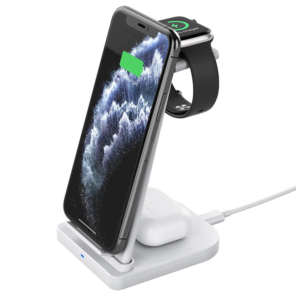Беспроводное зарядное устройство 3 в 1 для iPhone 11 X Xs AirPods Apple Watch 12345, подставка для беспроводной зарядки для iWatch, Samsung, Huawei, Xiaomi