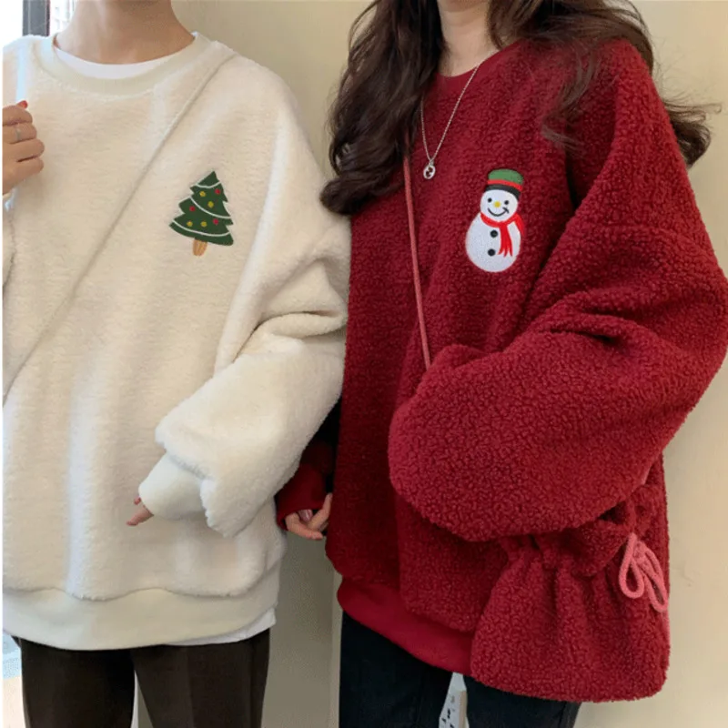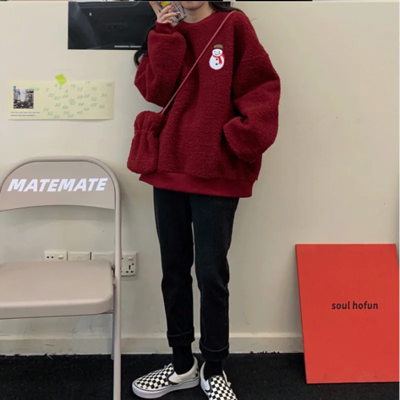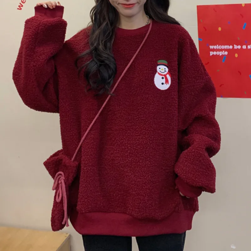 Женский пушистый свитшот, флисовый пуловер большого размера с вышивкой в виде рождественской елки, снеговика, подходящая сумка для осени и зимы