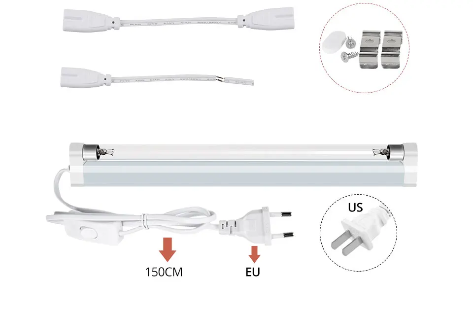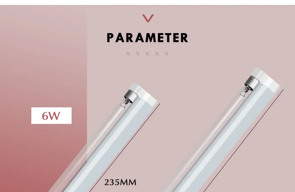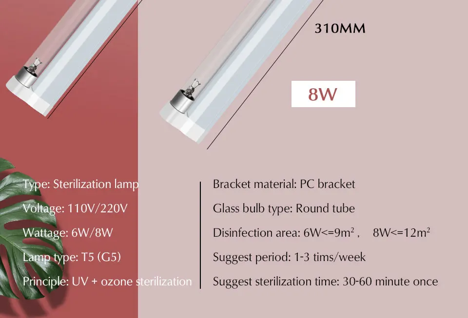 Тип: УФ бактерицидная лампа для дезинфекции, излучающая Цвет: голубовато-фиолетовый материал кронштейна: Алюминий Напряжение кронштейна: 110 В/220 В мощность: 6 Вт/8 Вт Тип лампы: T5 (G5) тип стеклянной лампы: круглая длина трубки: прибл. 230 (мм)/300 (мм) Область дезинфекции: 6 Вт <= 9 м & sup;2; 8 Вт <= 12 м & sup;2; Предполагаемый период: 1-3 раза в неделю предполагаемое время стерилизации: 30-60 минут один раз