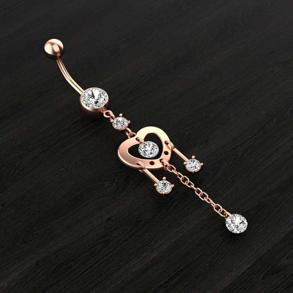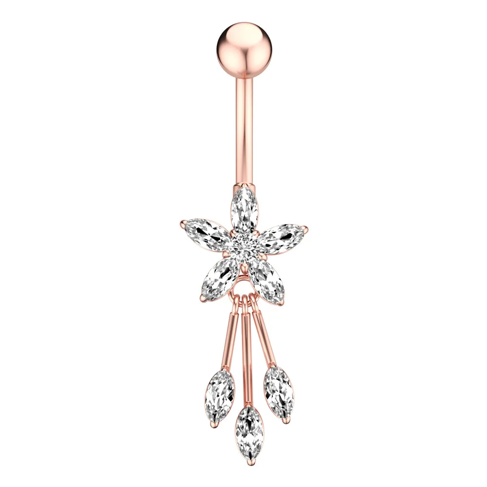 Цветок Сердце длинное висячее пирсинг пупка кольцо 14 г Нержавеющая...