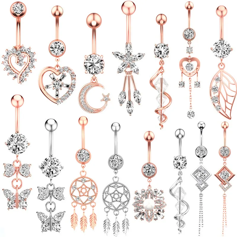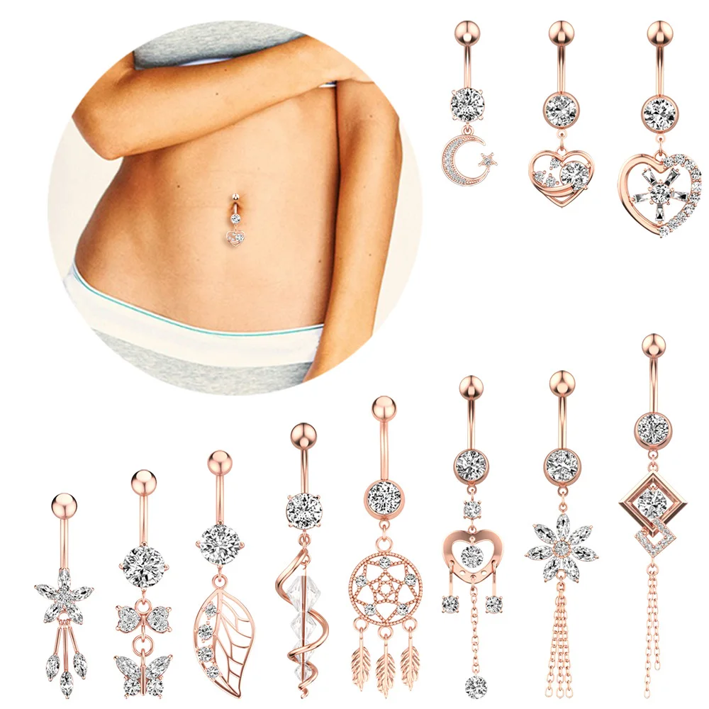 Набор для пирсинга для живота из хирургической стали с кристаллами,...