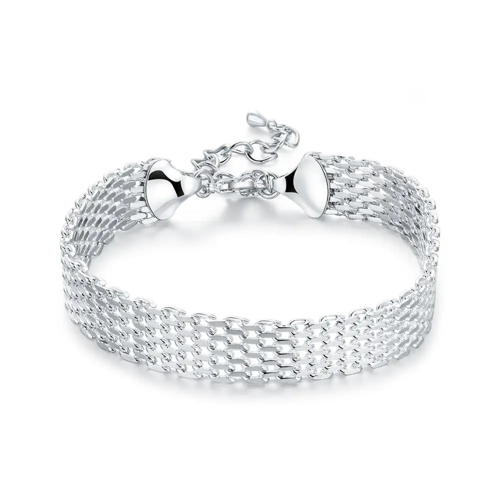 Модные ювелирные изделия, браслет из стерлингового серебра 925 пробы, сетчатый Браслет, Женские Ювелирные изделия, подарок