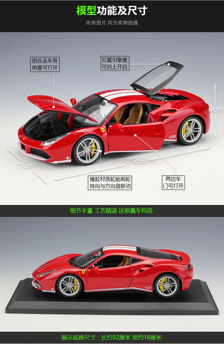 Модель автомобиля из сплава Bburago FERRARI 488GTB 458 348ts, модель статического металла, 1:18