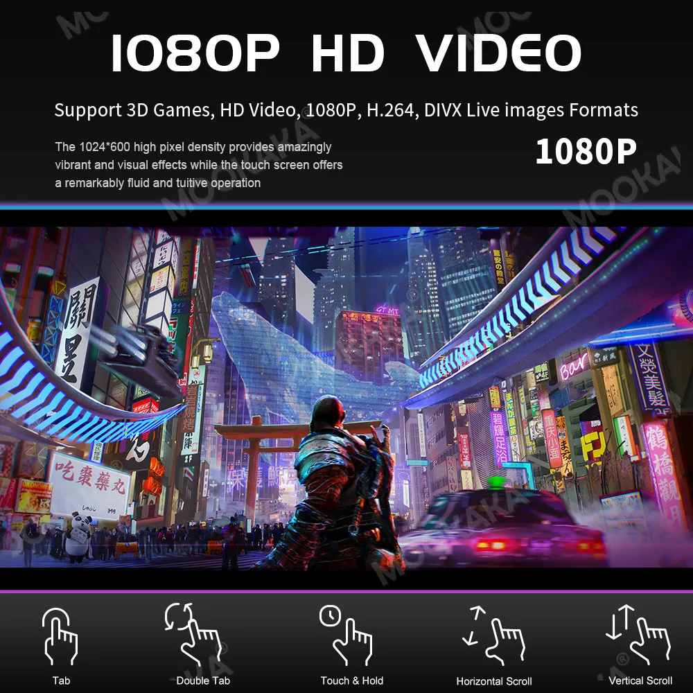 1024*600 высокая плотность пикселей удивительно яркий и визуальный эффект, в то время как сенсорный экран обеспечивает удивительно плавную и питательную работу