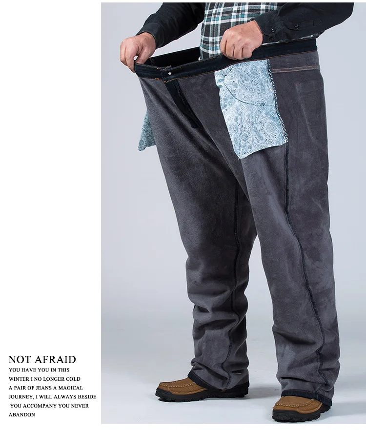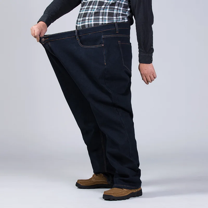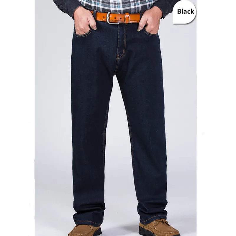 Мужские утепленные джинсы с высокой талией, черные утепленные джинсы с эластичным поясом, зимние брюки больших размеров 44, 46, 48, 50, 52, Классические джинсовые флисовые брюки, 2022 кг